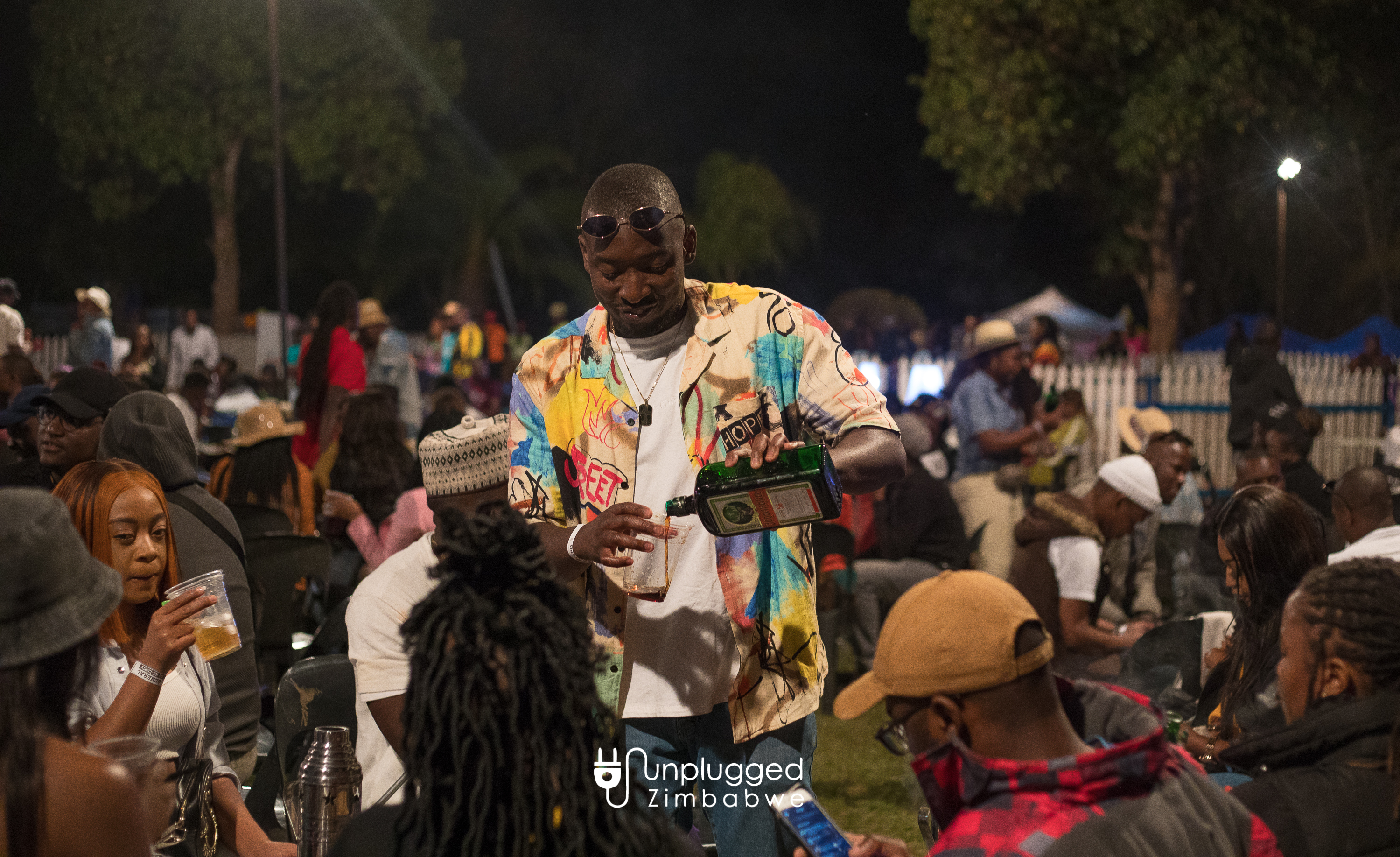 HE IS THE MEISTER! Man serving himself with the iconinic German digestif Jägermeister during the Unplugged Festival on August 27, 2022. IMAGE By Alexander Gusha for Unplugged Zim