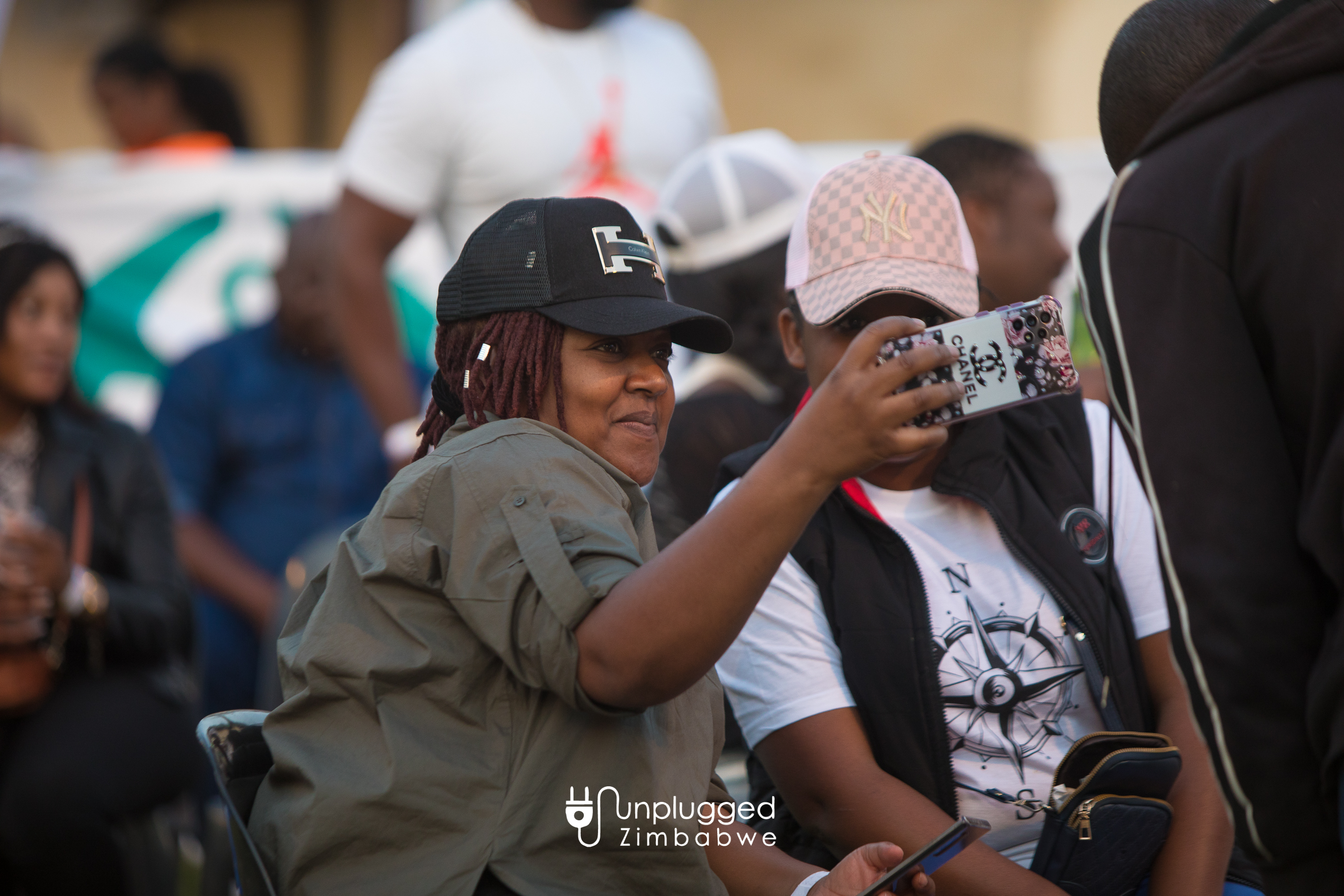 A FRAME WITHIN A FRAME: Two festival goers takes a selfie at the Unplugged Festival, August 27, 2022. IMAGE By Alexander Gusha for Unplugged Zim