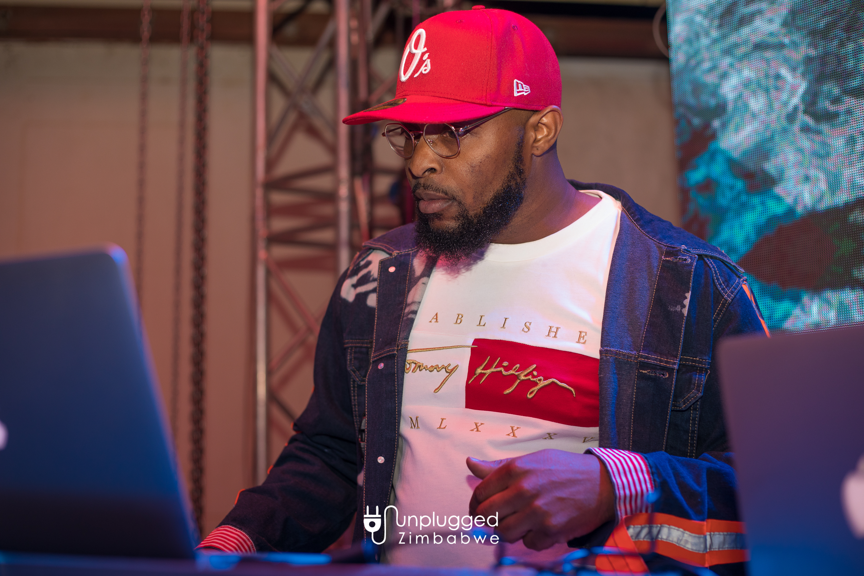 YOU KNOW THE NAME: DJ Rimo Jackson donning his signature denim during his performance at the Unplugged Festival on August 27, 2022. IMAGE By Alexander Gusha for Unplugged Zim