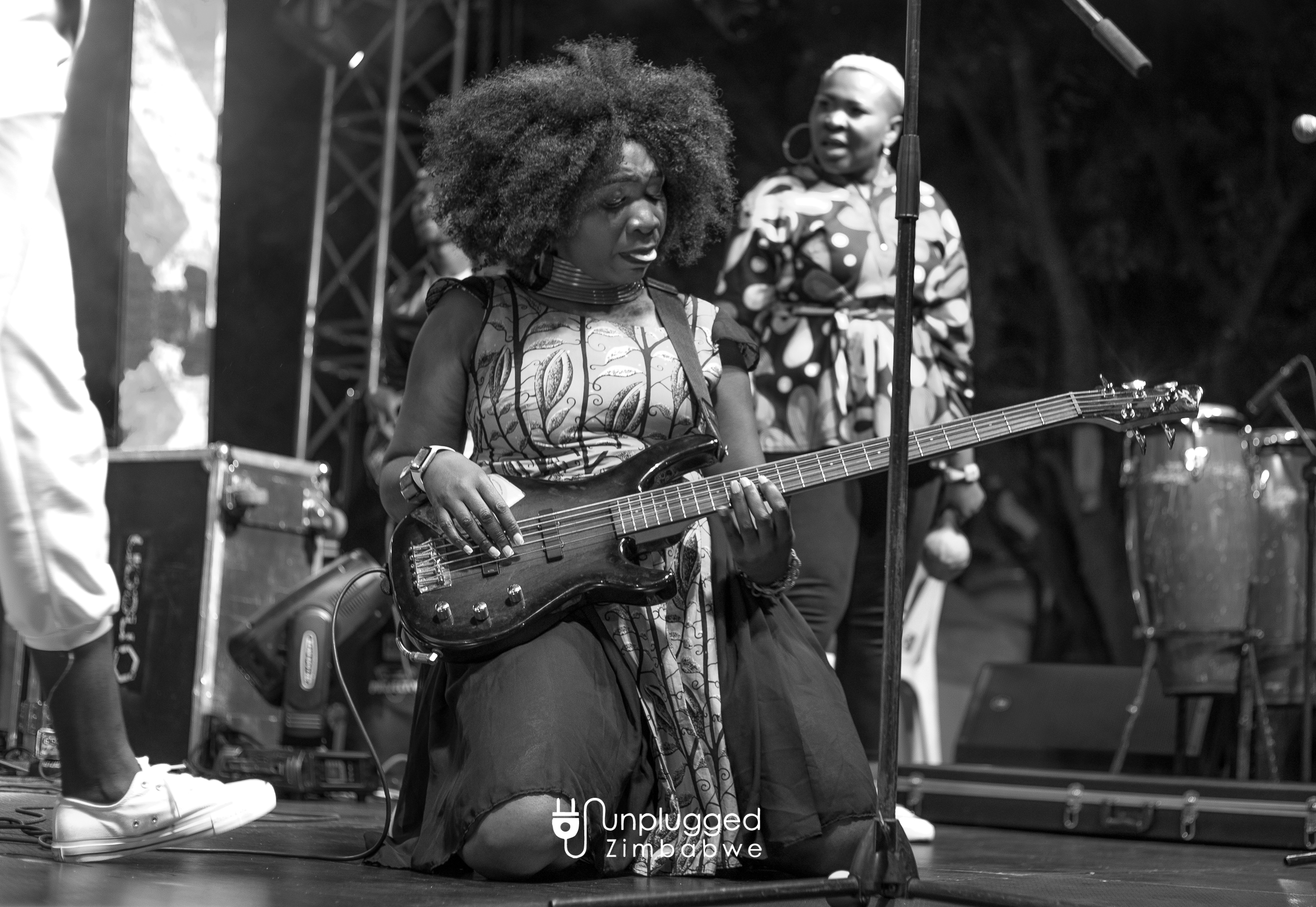 WHAT A MAN CAN DO… Afro-jazz Edith WeUtonga kneels down on stage with a guitar during her performance at the Unplugged Festival on August 27, 2022. IMAGE By Alexander Gusha for Unplugged Zim